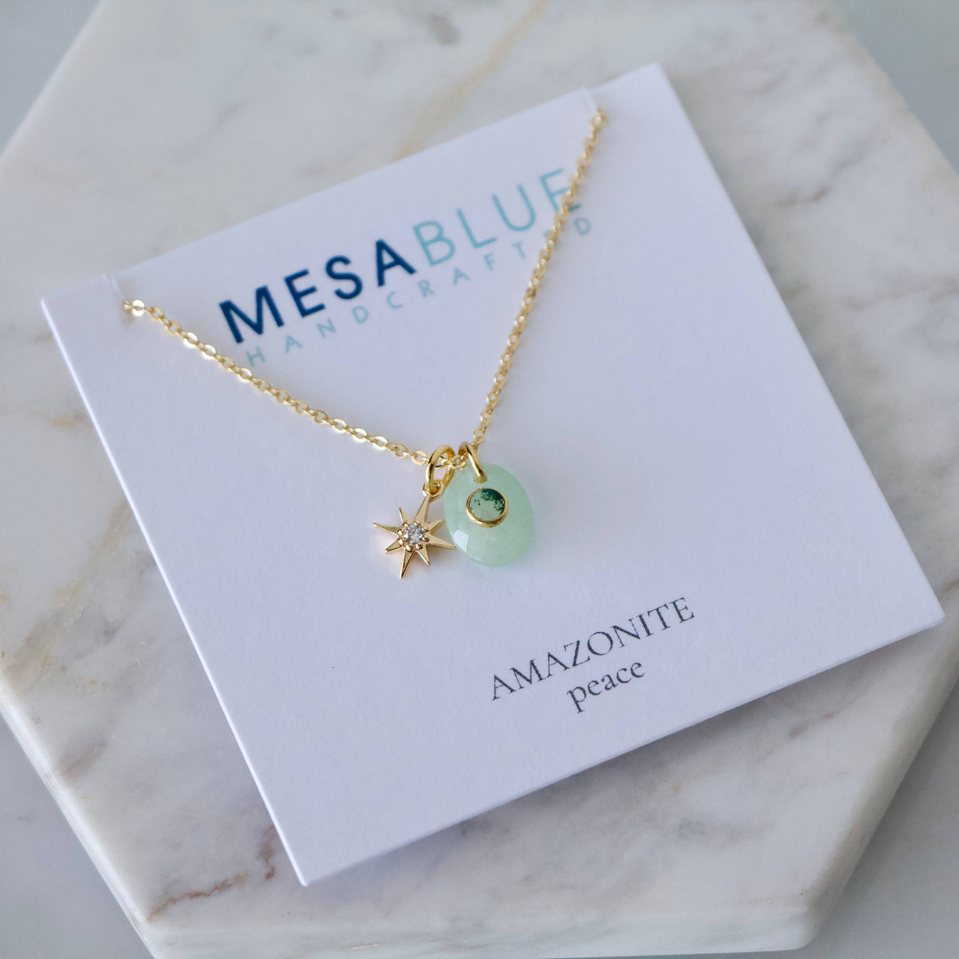 Labradorite or Amazonite Moss Agate Inlay Star Necklace
