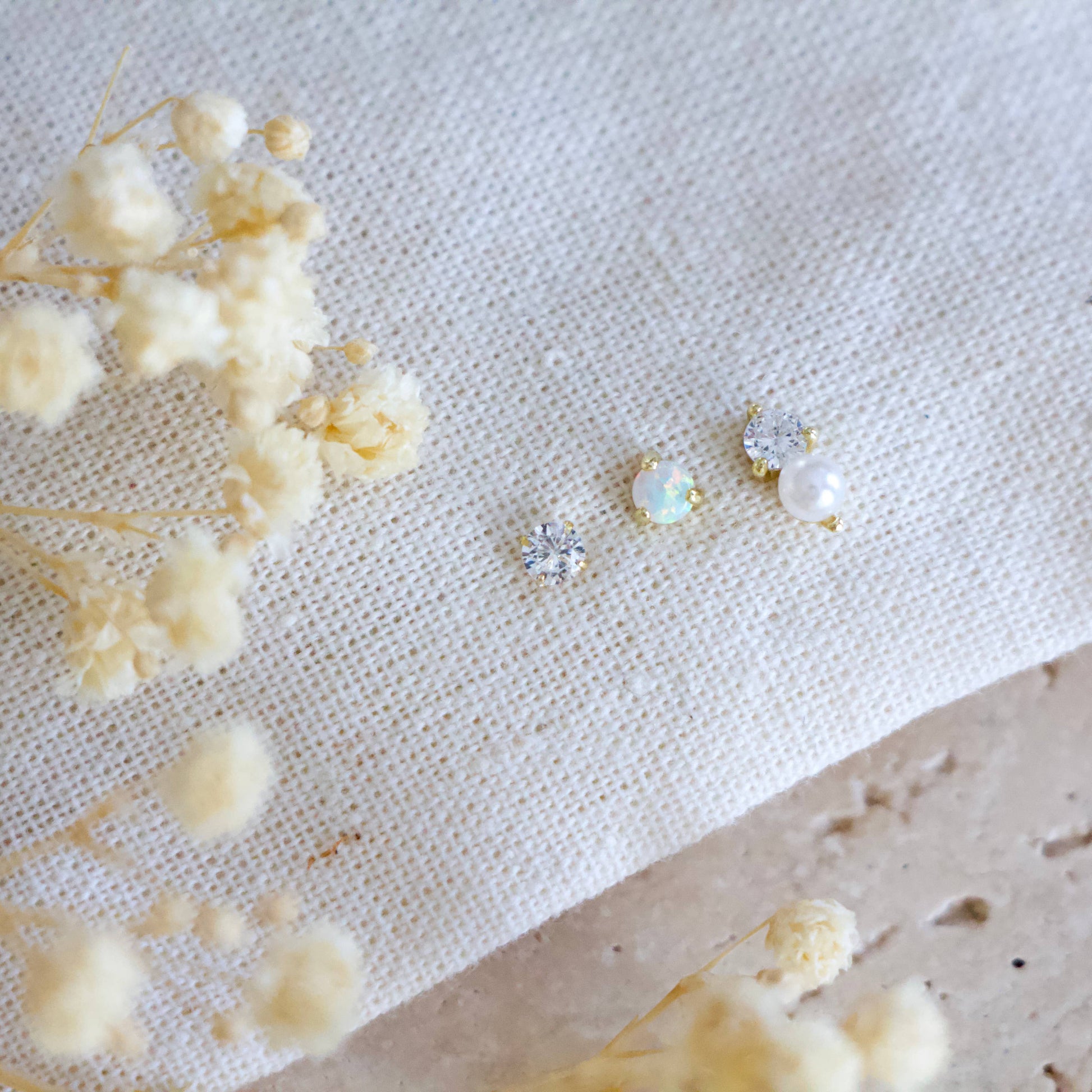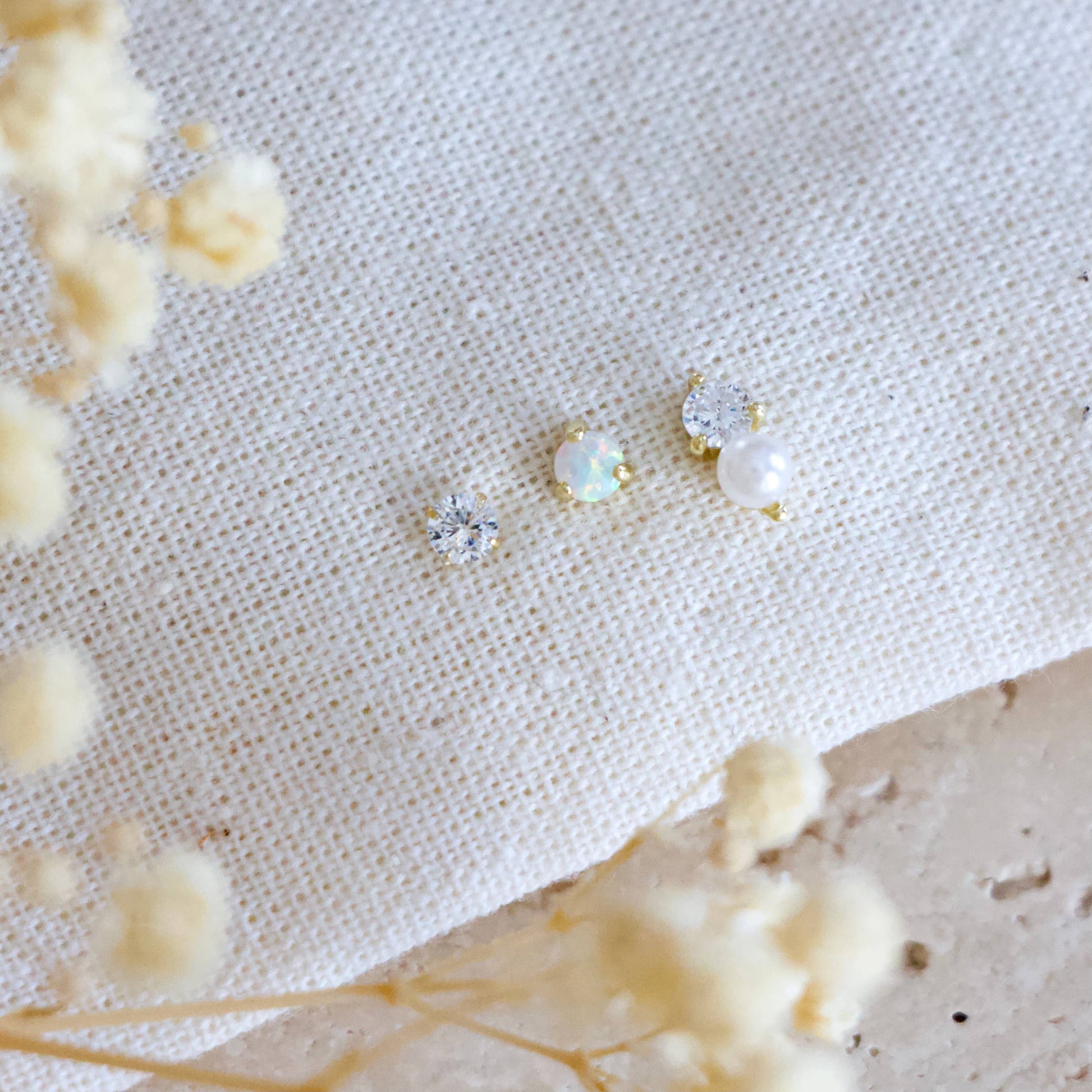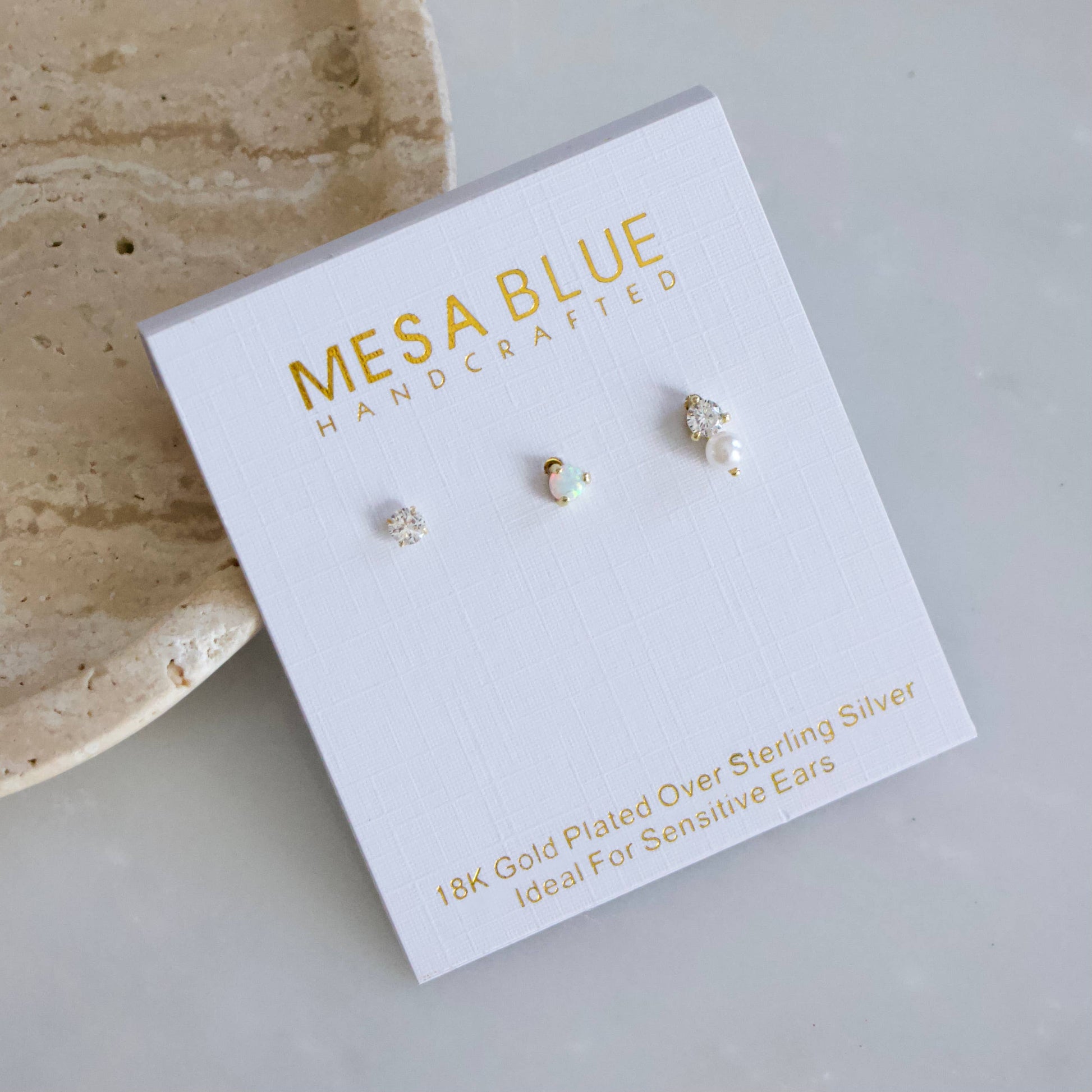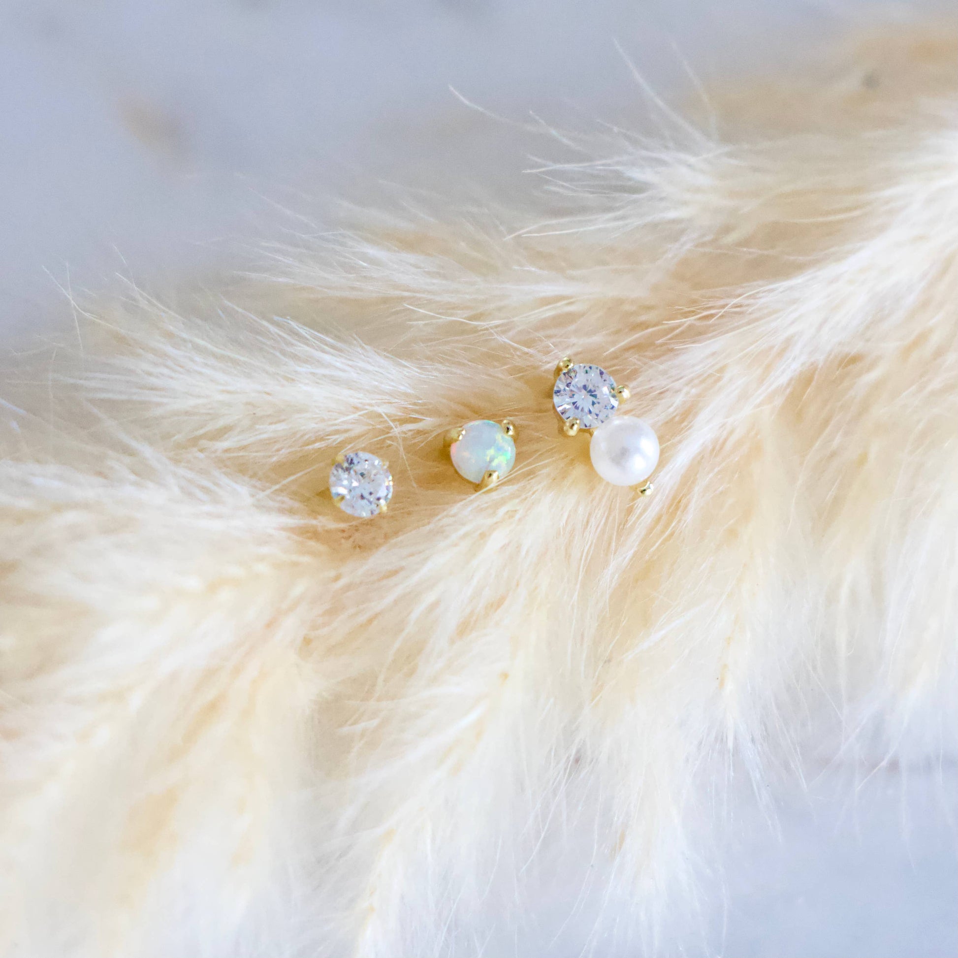 Opal, Pearl, CZ Earring Set, Hypoallergenic, Sterling