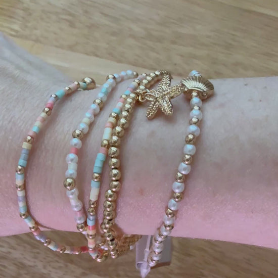 Like tiny treasures gathered along the shore, the Seaside Treasure Bracelet Set brings together delicate pearls, soft coastal beads, and charming seaside details. Featuring starfish and shell accents, each bracelet adds a little shimmer of ocean magic to your everyday style.